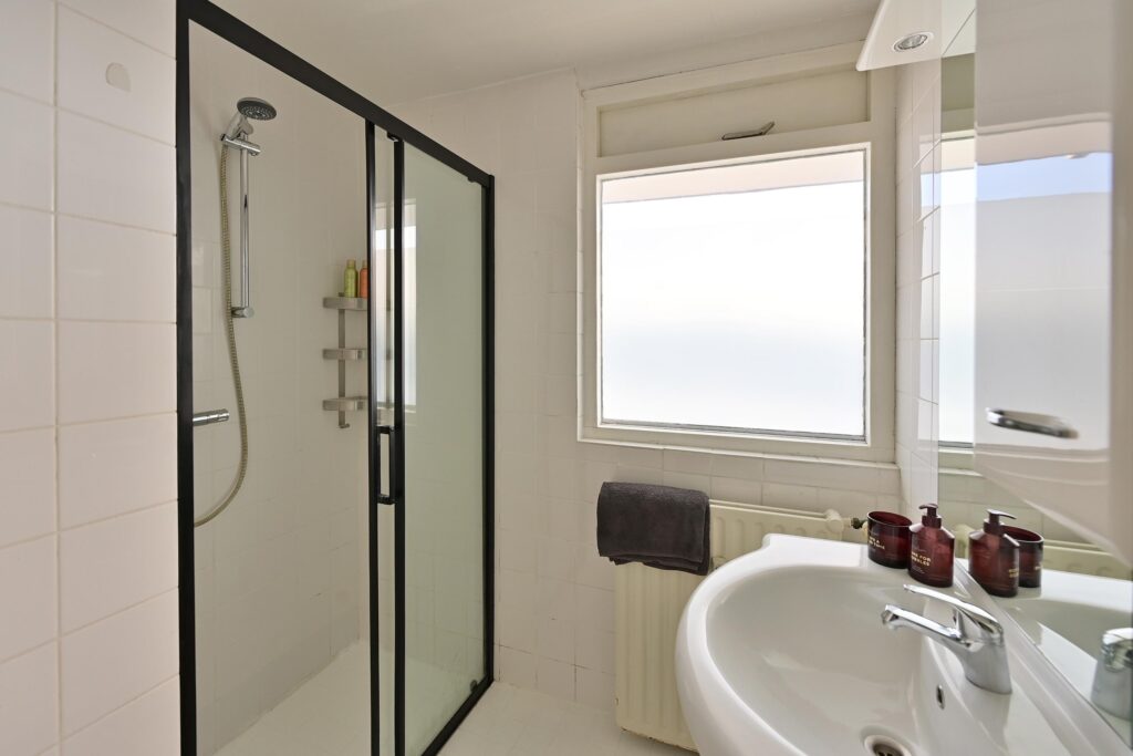 Overloop met bergkast en opstelling voor wasmachine en droger. Zeer ruime slaapkamer (voorheen twee kamers), tweede slaapkamer met toegang tot het zonnige balkon (ochtend- tot middagzon). Moderne badkamer met inloopdouche met schuifdeur en wastafelmeubel.