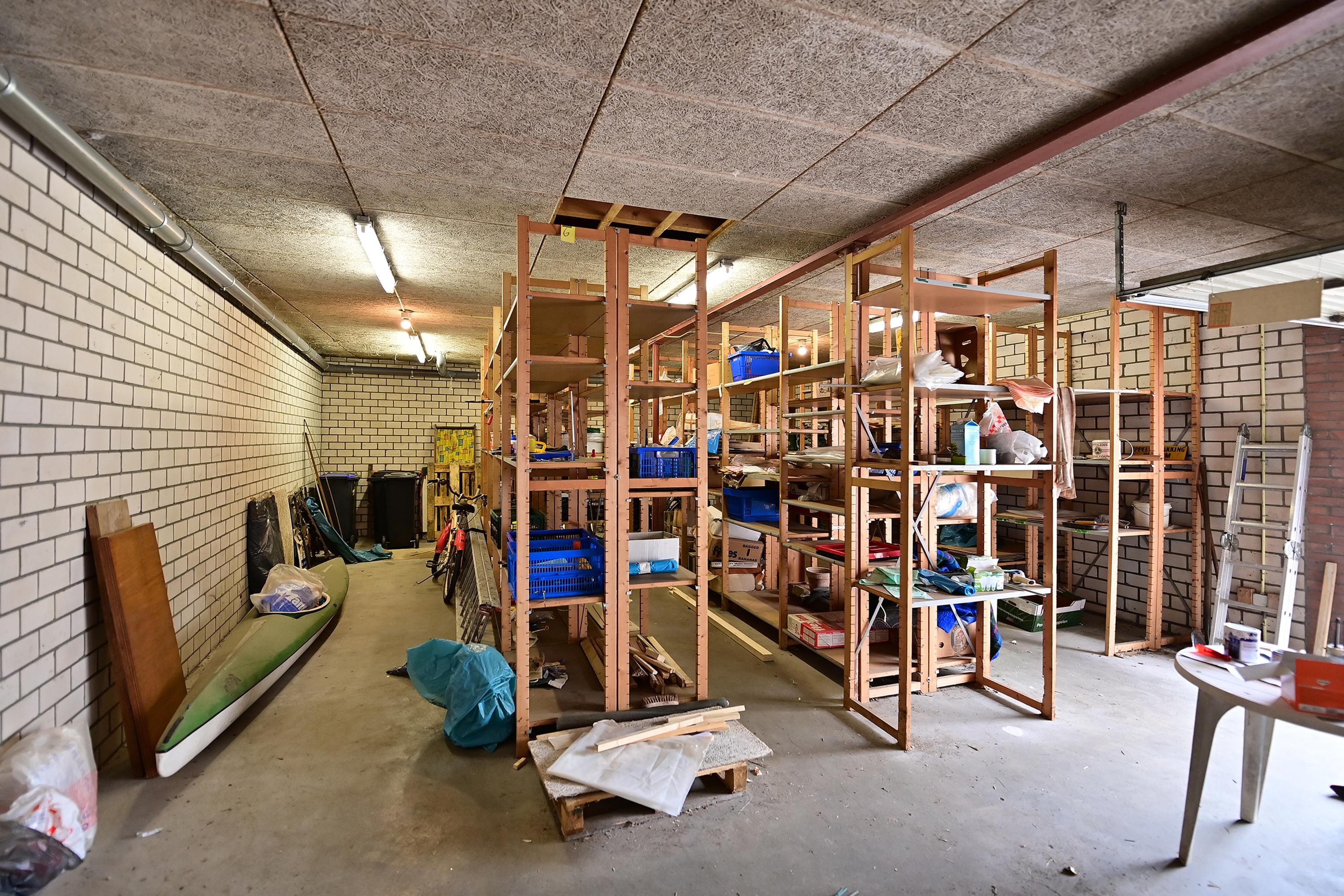 • In de achtertuin bevindt zich een royale garage/werkruimte van 75 m², voor diverse doeleinden geschikt (opslag, beroep aan huis, etc.). De garage/werkruimte heeft een dubbele muur.