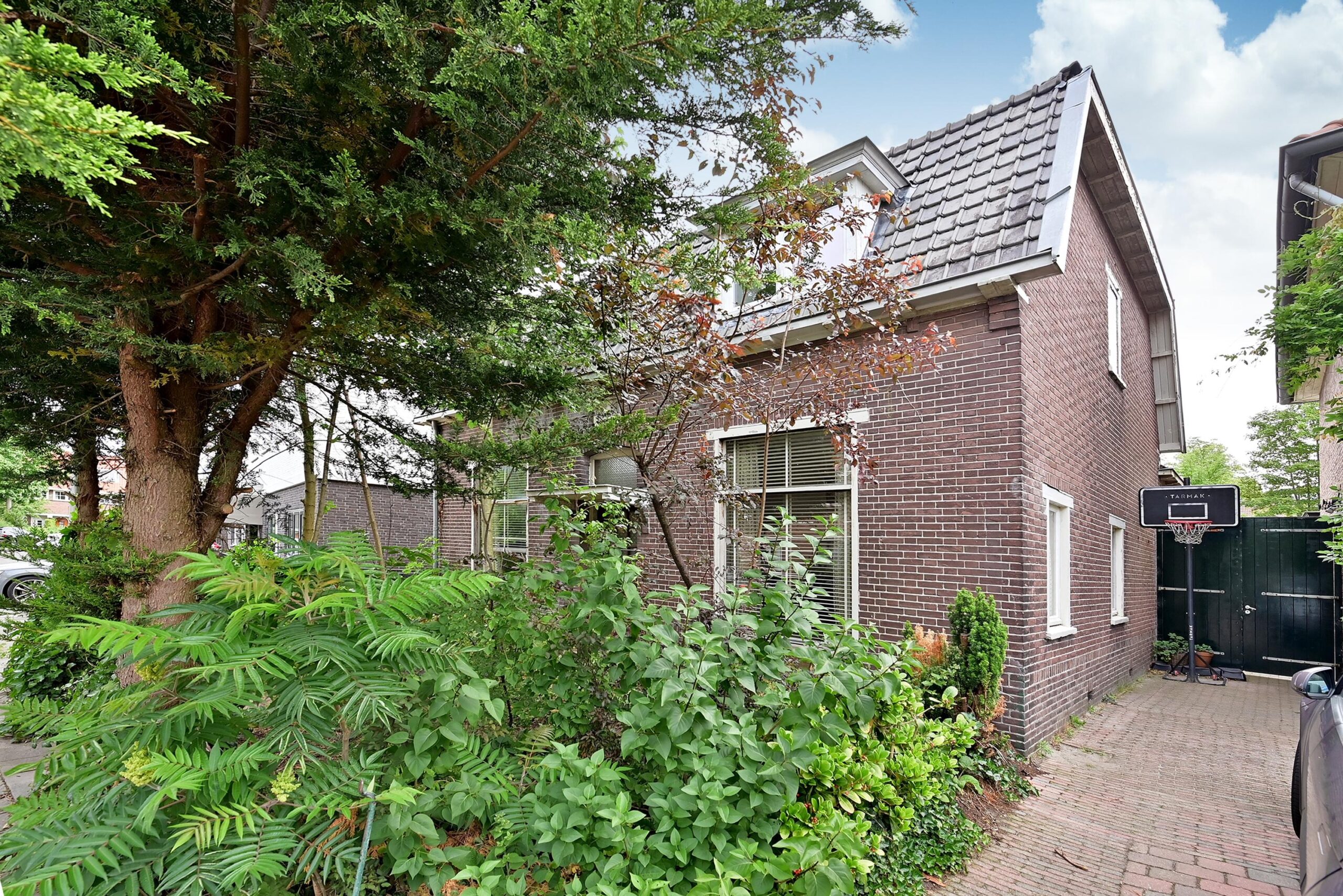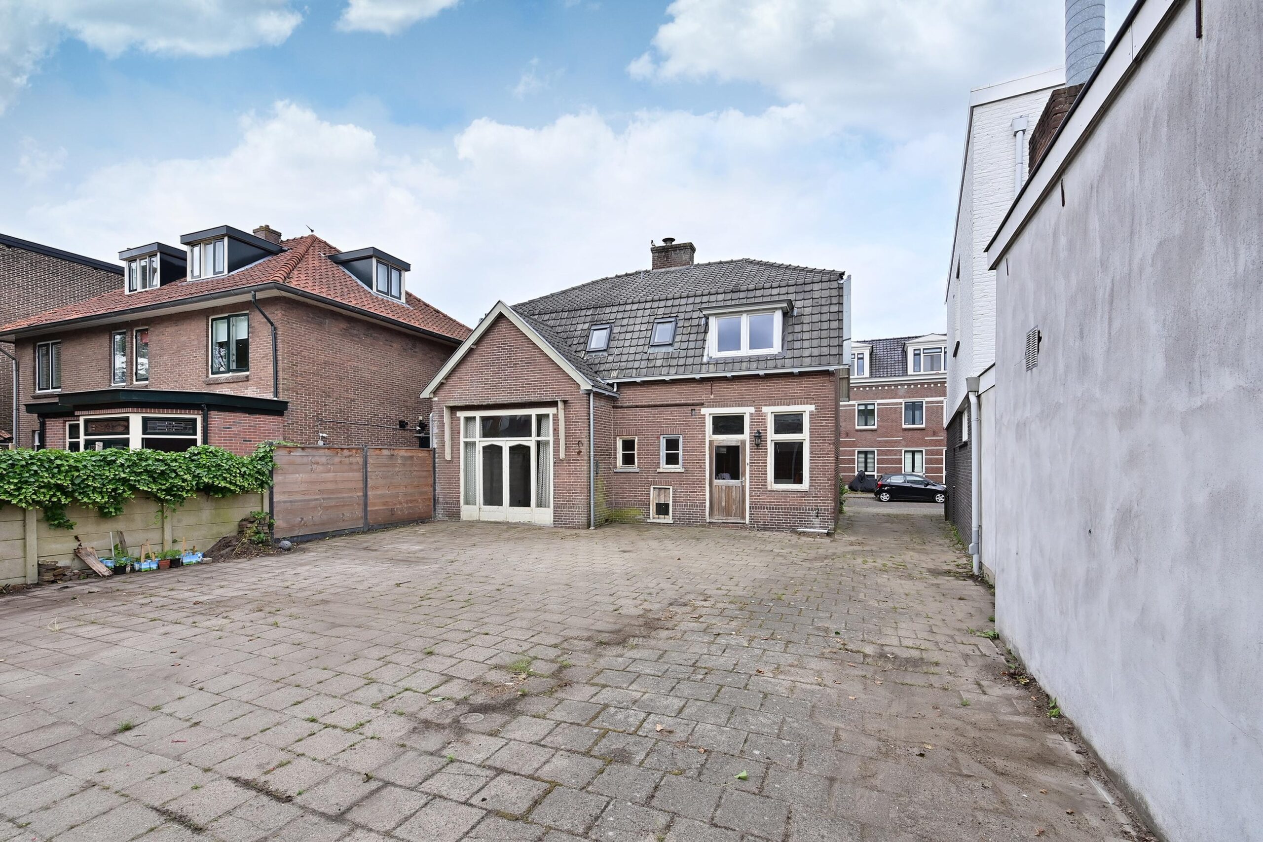 • De oprit ligt aan de linkerzijde van het woonhuis.