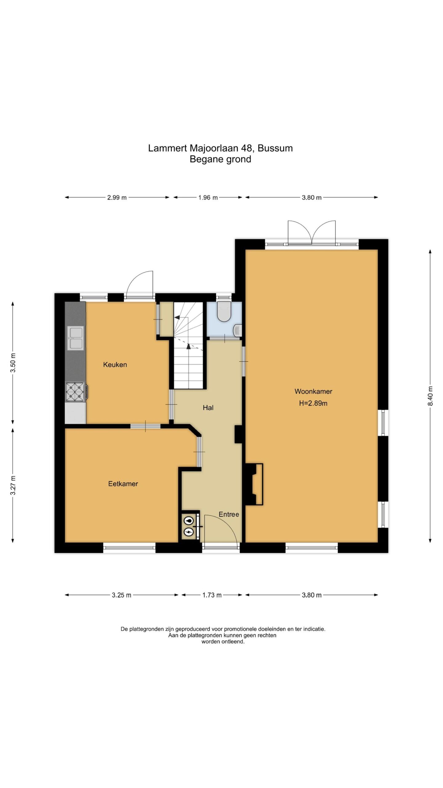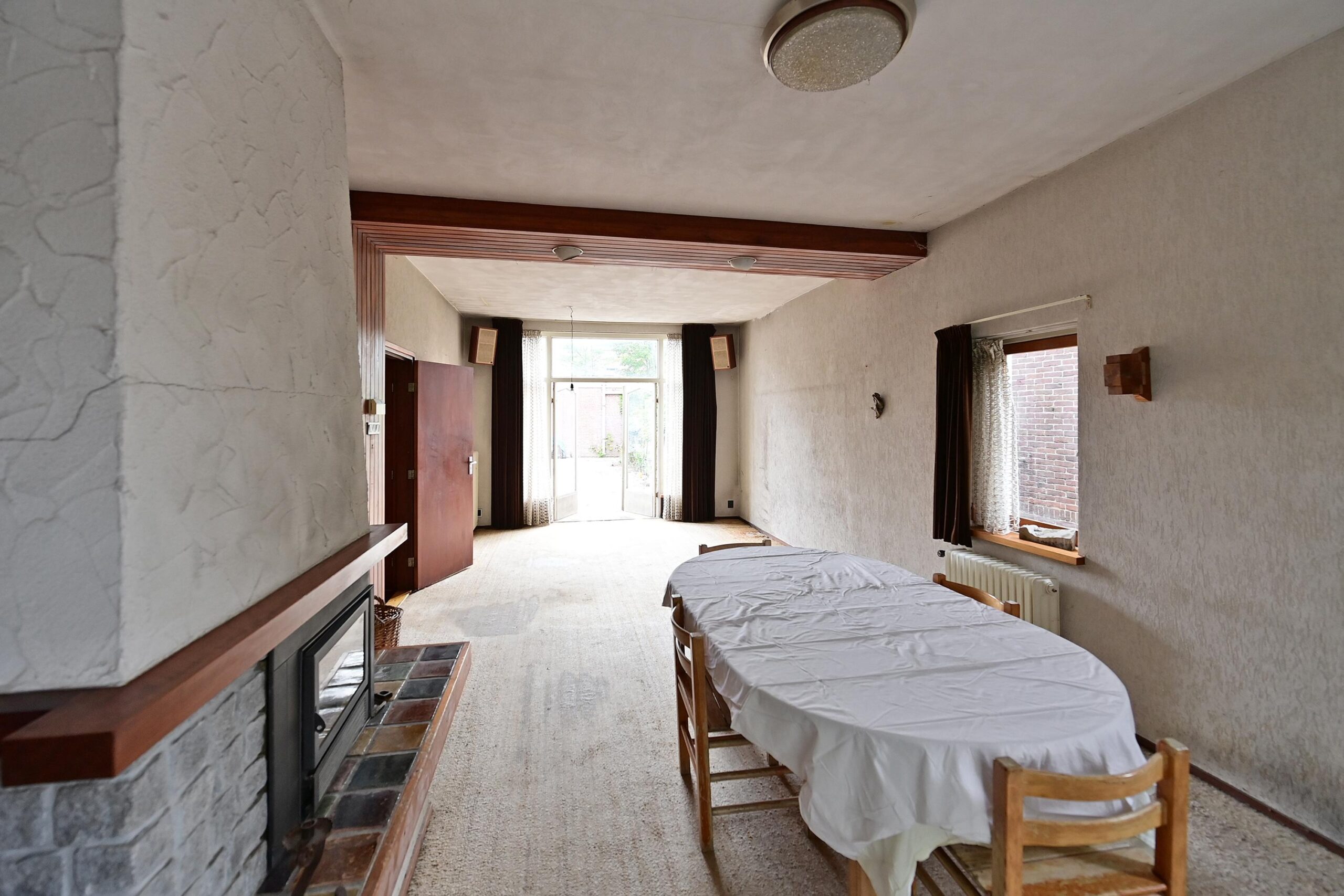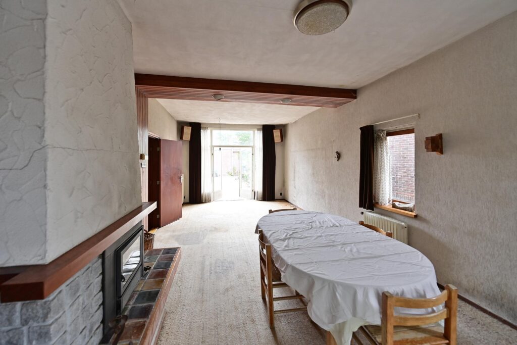 • Aan de rechterzijde ruime woonkamer van ca. 32 m² met openslaande deuren naar de tuin;