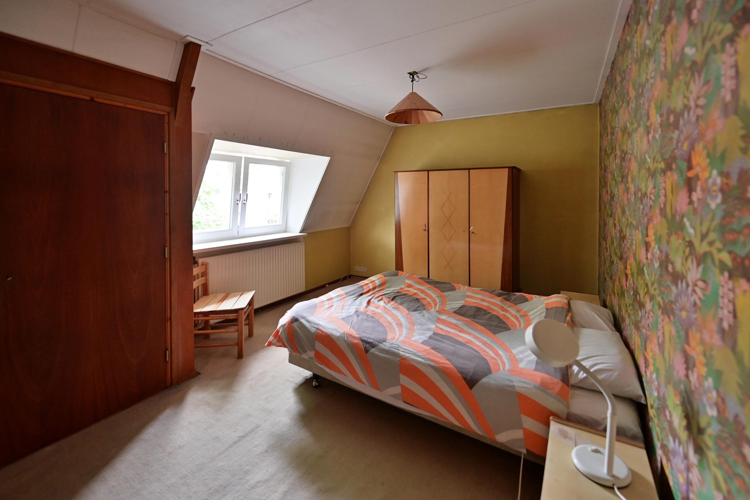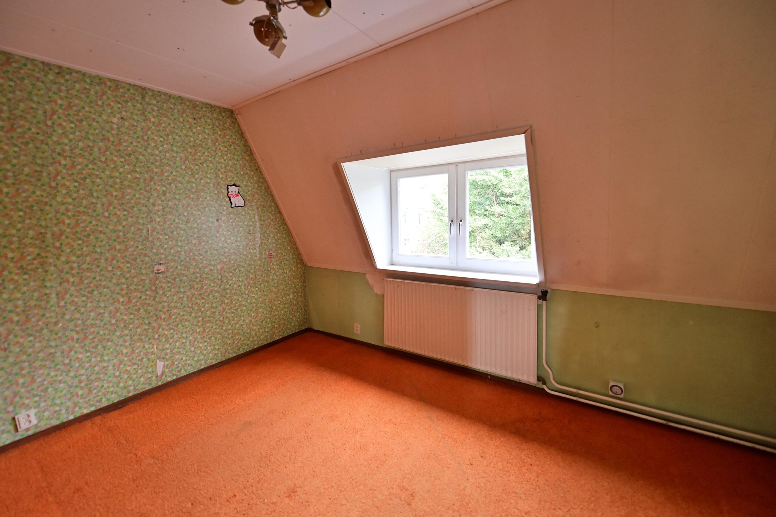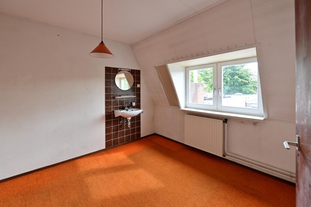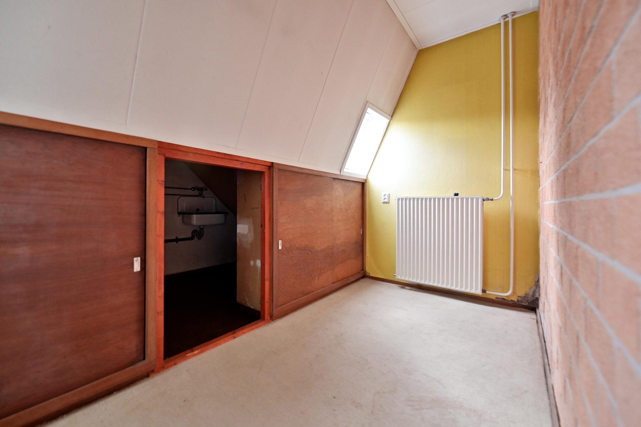 • 4e kleine slaapkamer van ca. 6 m² met dakraam en wastafel;