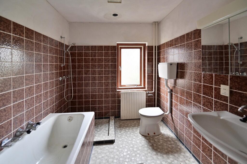 • Badkamer met ligbad, aparte douche, wastafel en 2e toilet;