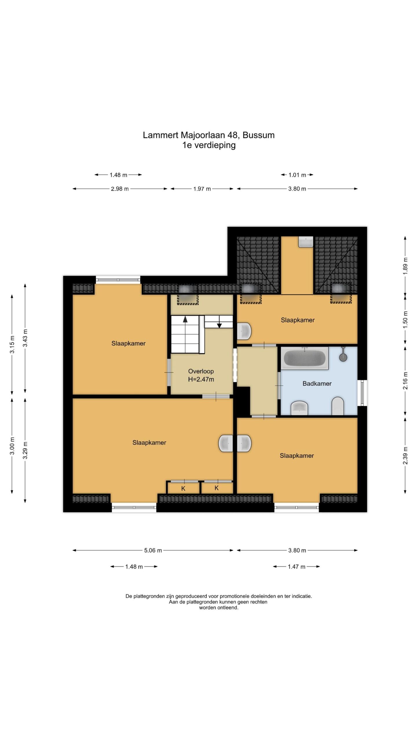 • 3e ruime slaapkamer van ca. 10 m²;