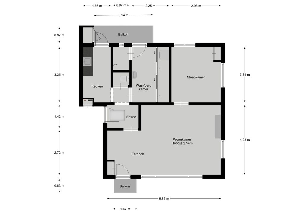 > Woonoppervlakte 58 m²
