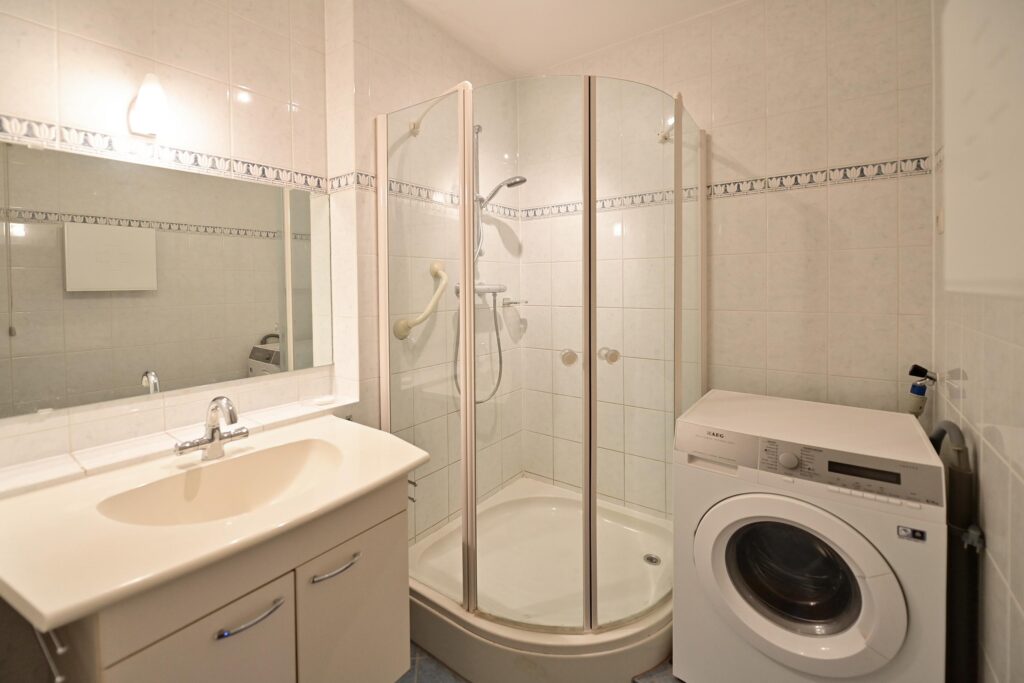 • Badkamer met wastafel, douche en wasmachineaansluiting