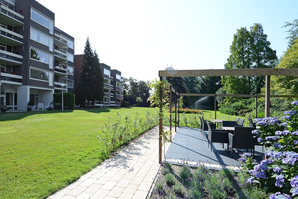 Aan de achterzijde van het “Residence Bosch van Bredius” ligt dit verzorgde 2-kamer appartement met balkon op het zuidwesten en vrij uitzicht over de prachtige aangelegde achtertuin.
