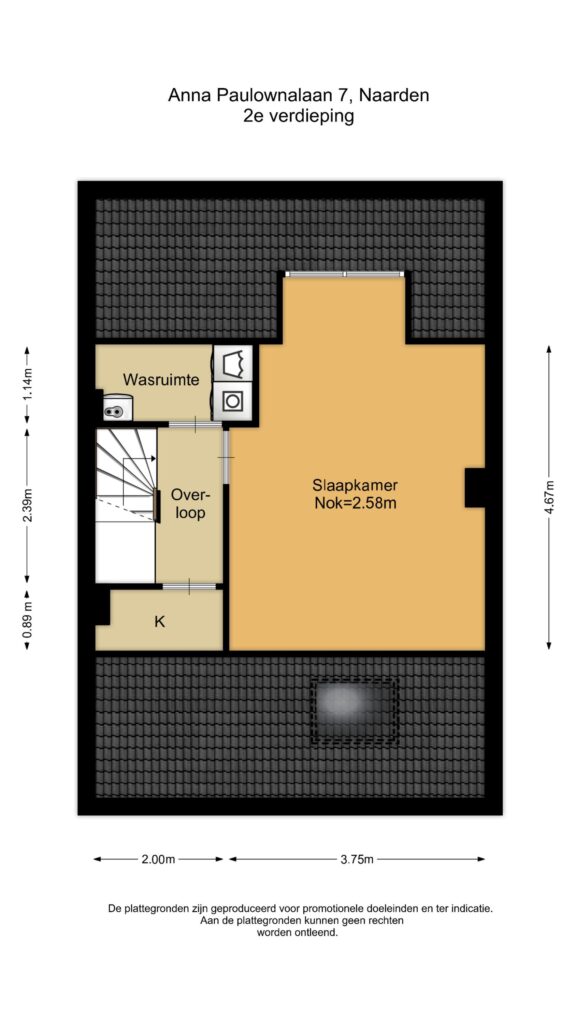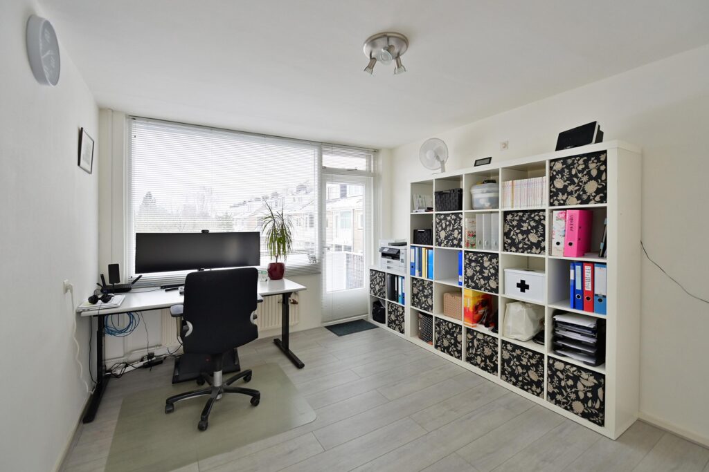 Overloop, stookruimte met cv, wasmachine en aparte wasdroger aansluiting, 2e bergkamertje, grote slaapkamer met dakkapel en Velux dakraam, knieschotten met veel opbergruimte.