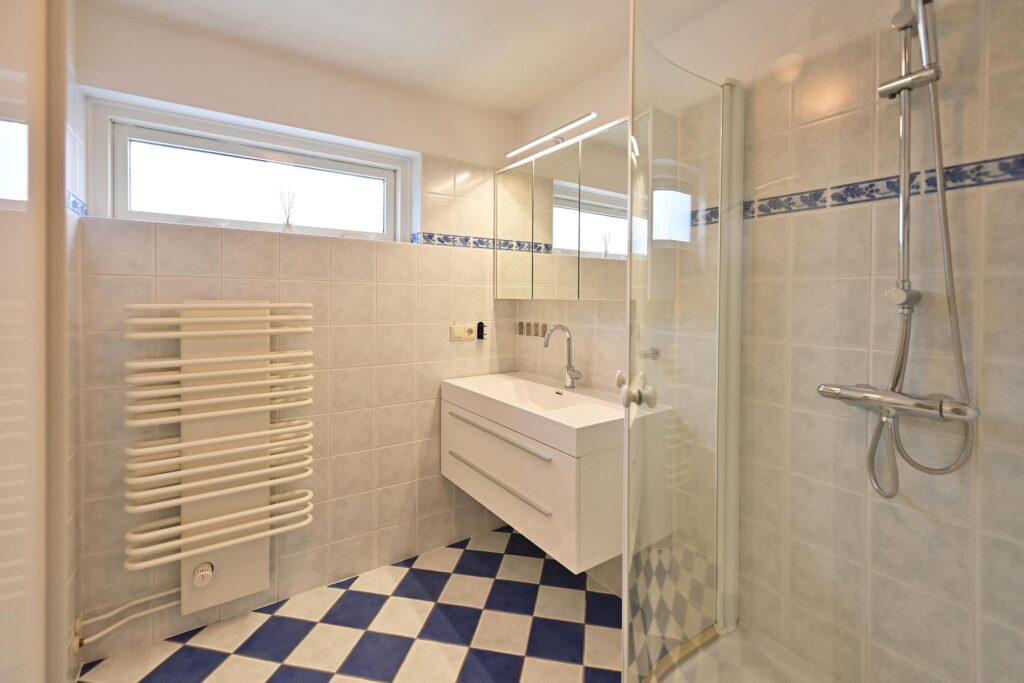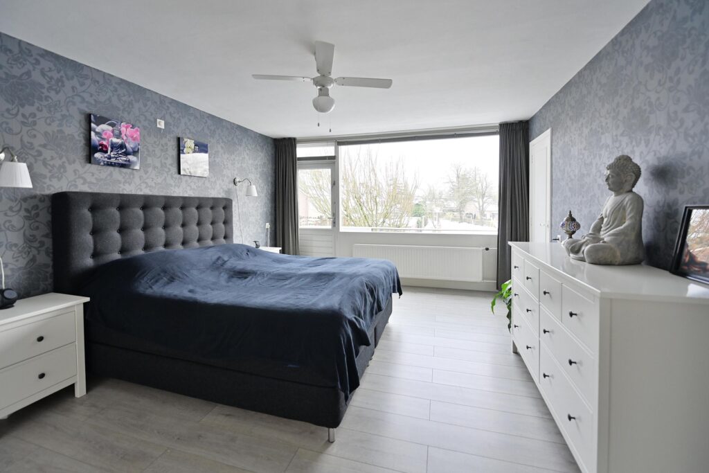 Overloop, 1e grote slaapkamer met vaste kasten en balkon, 2e kleinere slaapkamer, nette badkamer met vloerverwarming, 2e toilet, inloopdouche en wastafelmeubel. Via doorloopdeur naar 3e grote slaapkamer met vaste kasten en balkon aan voorzijde.
